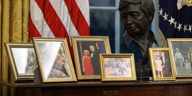 حصلت الصحافة الأميركيّة على أول لمحة عن المكتب البيضاوي للرئيس بايدن أمس الأربعاء، حيث أظهرت الصور كيف تحوّل المكتب بشكل واضح في غضون ساعات ليعكس ذوق وخلفيّة صاحب المنصب.