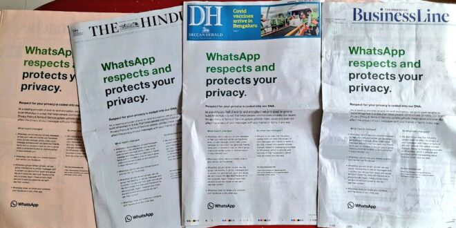 ولم يتوقف الأمر عند هذا الحد، حيث قامت الشركة بشراء إعلانات الصفحة الأولى لجميع الصحف الرائدة في دولة الهند “أكبر سوق لواتساب”، وأشارت في إعلاناتها “واتساب يحترم خصوصيتك ويحميها”.