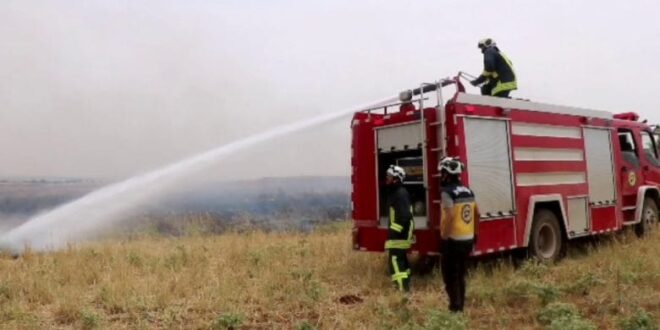 سيطرت كوادر الإطفاء، اليوم الجمعة، في محافظتي حمص ودرعا على حرائق نشبت بقرية الزعفرانة غربي حمص، ومدينة الشيخ مسكين ريف درعا.