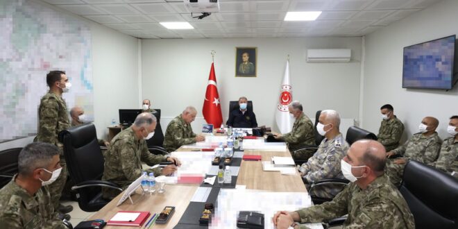 ونشرت الوزارة صوراً، امس الاثنين، من الزيارة التفقدية، وكان على رأسها وزير الدفاع، خلوصي آكار ورئيس الأركان، يسار جولر، وقائد القوات البرية العميد أوميت دوندار.