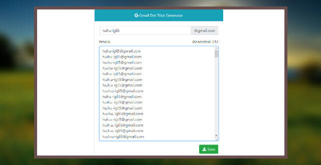 للتوضيح فإن البريد الإلكتروني IGLI5@gmail.com هو نفسه I.G.L.I.5@gmail.com لأن Gmail لا تضع أي اعتبار لوجود (.) داخل اسم المستخدم لكن المواقع الأخرى تفعل فتستطيع أن تسجل في نفس المواقع بنفس البريد الإلكتروني مع إضافة نقطة وستصلك رسالة التفعيل على بريدك الأساسي. وهناك موقع يقوم بتوليد كل إحتمالات البريد المتاحة من بريدك الأساسي بضغطة زر. قم بالدخول للموقع من الرابط أسفل التدوينة ثم أدخل بريدك الإلكتروني بدون @gmail.com وسيقوم الموقع تلقائياً بتوليد الإحتمالات المتاحة حسب عدد الأحرف الخاصة بحسابك ففي المثال كانت الإحتمالات 512 إحتمال ويمكنك تحميلهم في ملف TXT بضغطة زر على Save