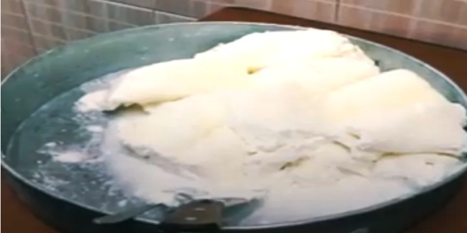 أما طريقة صناعة “الكيمر” فيتم بتسخين حليب الجاموس حتى درجة الغليان، ومن ثم يوضع في إناء كبير ويغطى بمادة مصنوعة من الصفصاف من المساء وحتى الصباح، وفي الصباح يتم تقطيع الطبقة المتشكلة على سطح الإناء، وبعدها يتم وضع قطع من الثلج داخل الحليب الموجود ضمن الإناء، ويترك لدقائق عدة ليتكثف مكون “الكيمر” لتصبح الأكلة جاهزة للتقديم بعد إضافة العسل لها .
