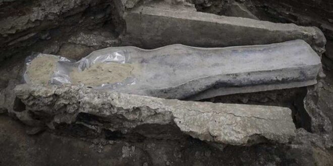 ويعتقد العلماء أن هذا التابوت يعود للقرن الرابع عشر. وكشفت الكاميرا بمنظار خاص عن وجود هيكل عظمي ووسادة من الورق والقماش، وأشياء لم يتم تحديدها بدقة بعد في داخل التابوت.