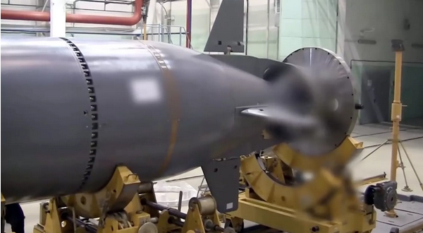 هذا هو ما يسمى “سلاح يوم القيامة” الحديث. يتحرك الطوربيد تحت الماء وعند انفجاره يتسبب في تسونامي نووي بارتفاع 500 متر يسقط على المدن الساحلية.