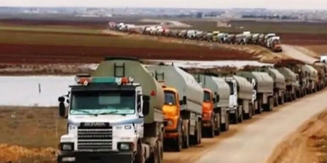 وأشارت مصادر محلية من ريف اليعربية إلى أن قوات الاحتلال الأمريكي أخرجت منذ فجر اليوم وعلى دفعات 55 صهريجاً محملاً بالنفط السوري المسروق، عبر معبر المحمودية غير الشرعي من ريف الحسكة إلى الأراضي العراقية.